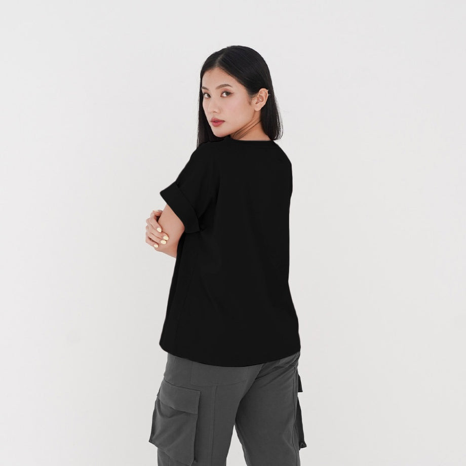 Elyn Rolled-up Sleeve T-shirt adalah kaos basic yang didesain tanpa potongan lengan (magyar sleeve) dan dilengkapi detail lengan digulung (rolled-up). Dengan cuttingan relaxed fit yang nyaman dipakai sangat cocok untuk semua tipe bentuk tubuh. Boat neckline pada bagian leher didesain untuk memberikan kesan leher yang lebih jenjang.